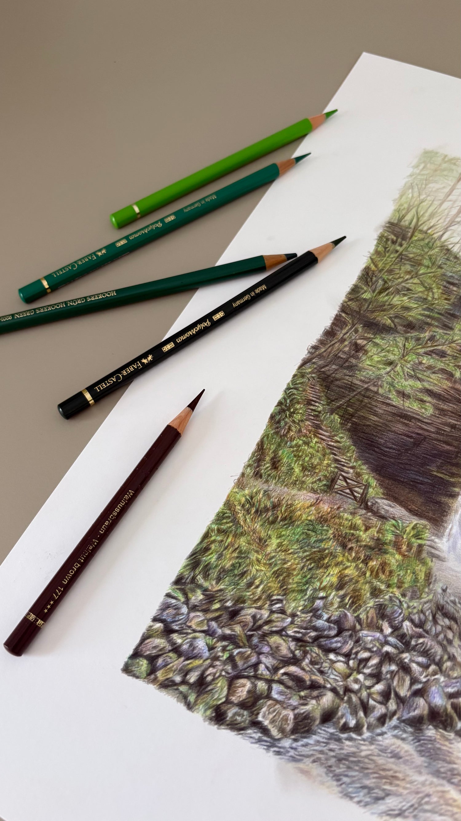 This is a one-of-a-kind original artwork, hand drawn with coloured pencil and filled with hours of slow, thoughtful work. Hardraw Force isn’t just a drawing, it’s a story, a memory, and a connection to nature.